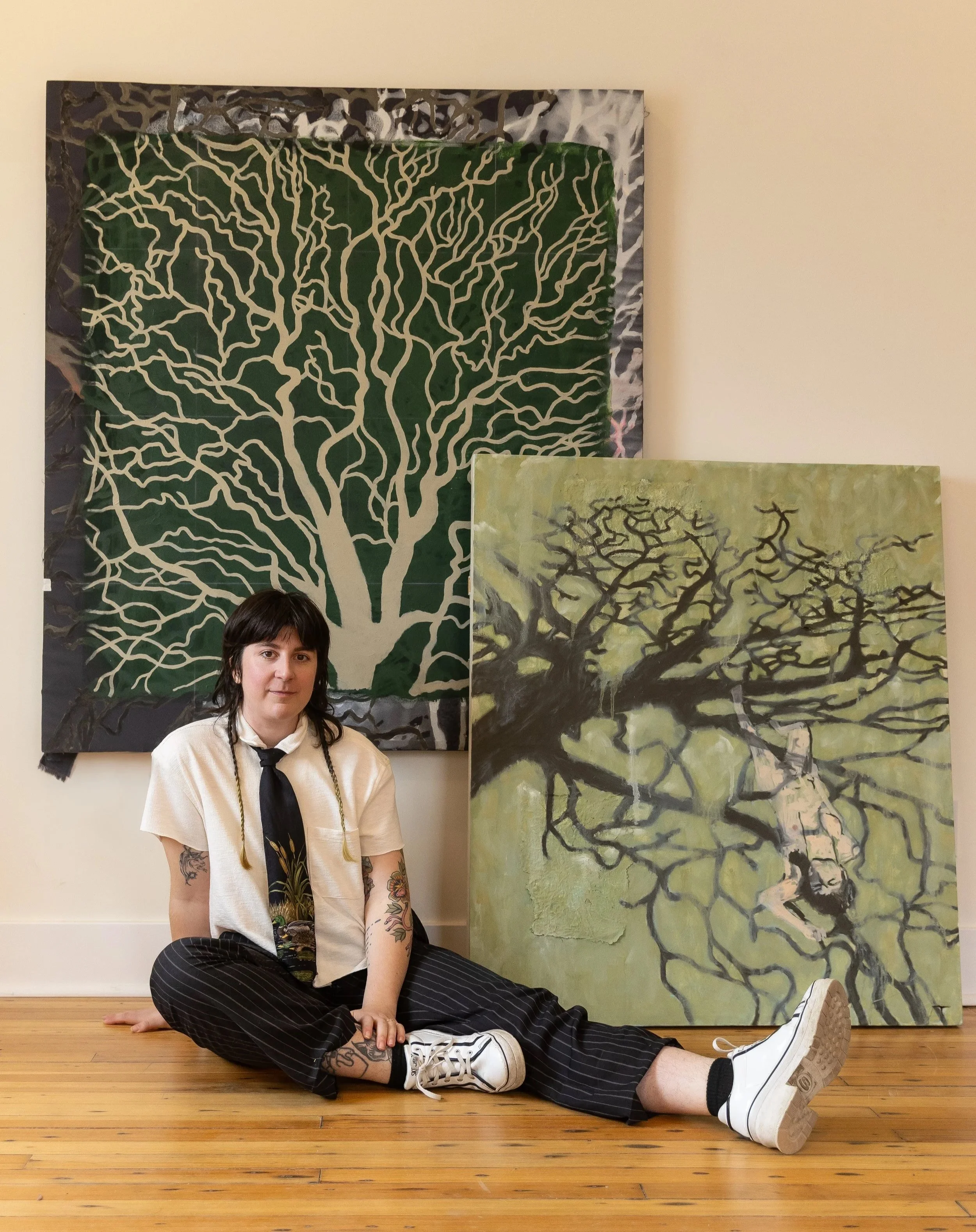 Lizzie Bilbrey is an Indianapolis based graphic designer, painter, paper maker, videographer, and performance artist. Her sense of humor and play, as well as connectedness to her garden sustains her across a wide breadth of mediums. Currently, she’s making her own natural paints, dyes, inks and paper from minerals, clay, and plant material. In the future she hopes to host workshops on these eco-friendly topics. She also works with ceramics, performs in a comedy art band Tubbles, and co-organizes the annual group show and art collective Wet Wet Mud.