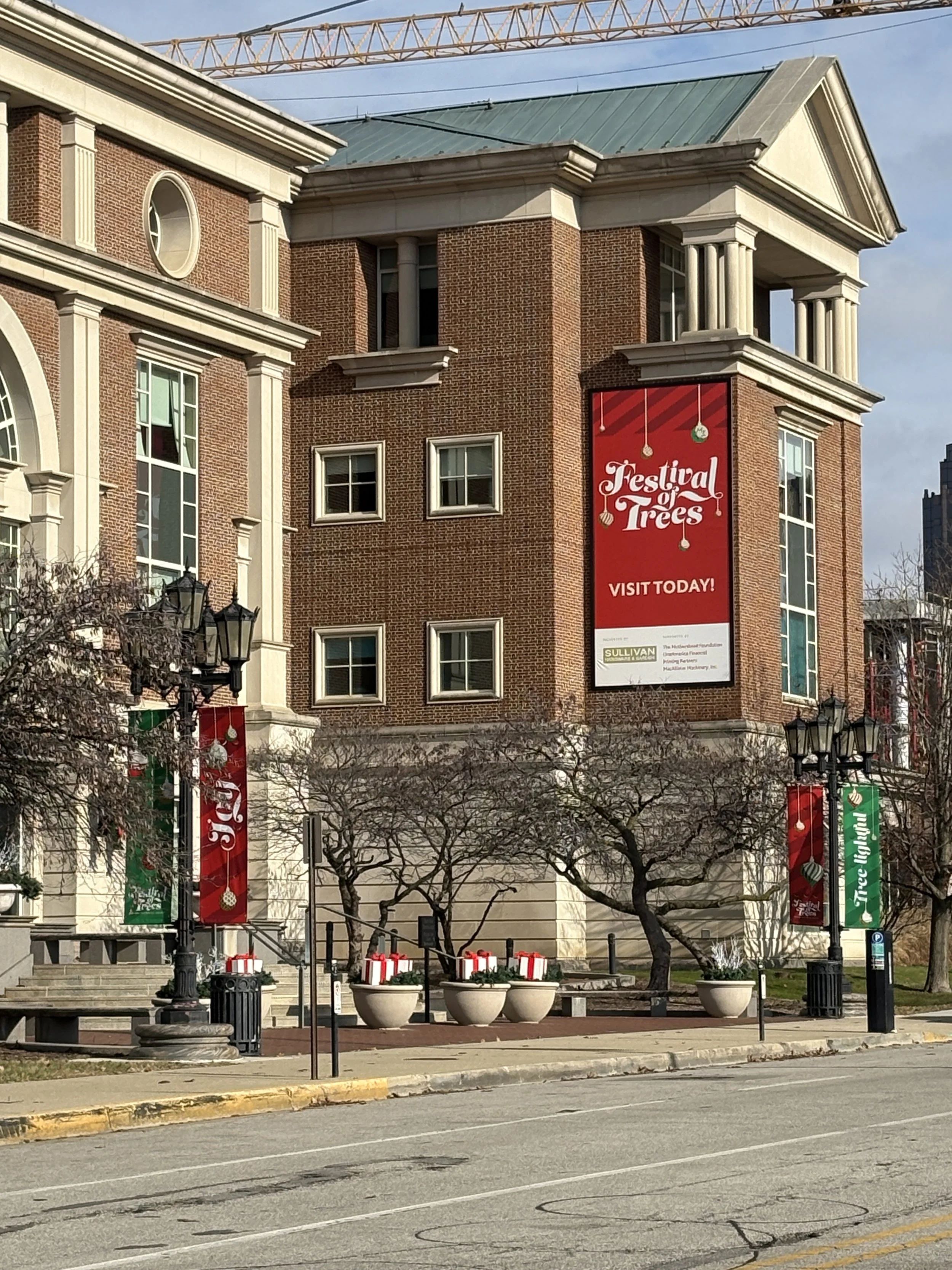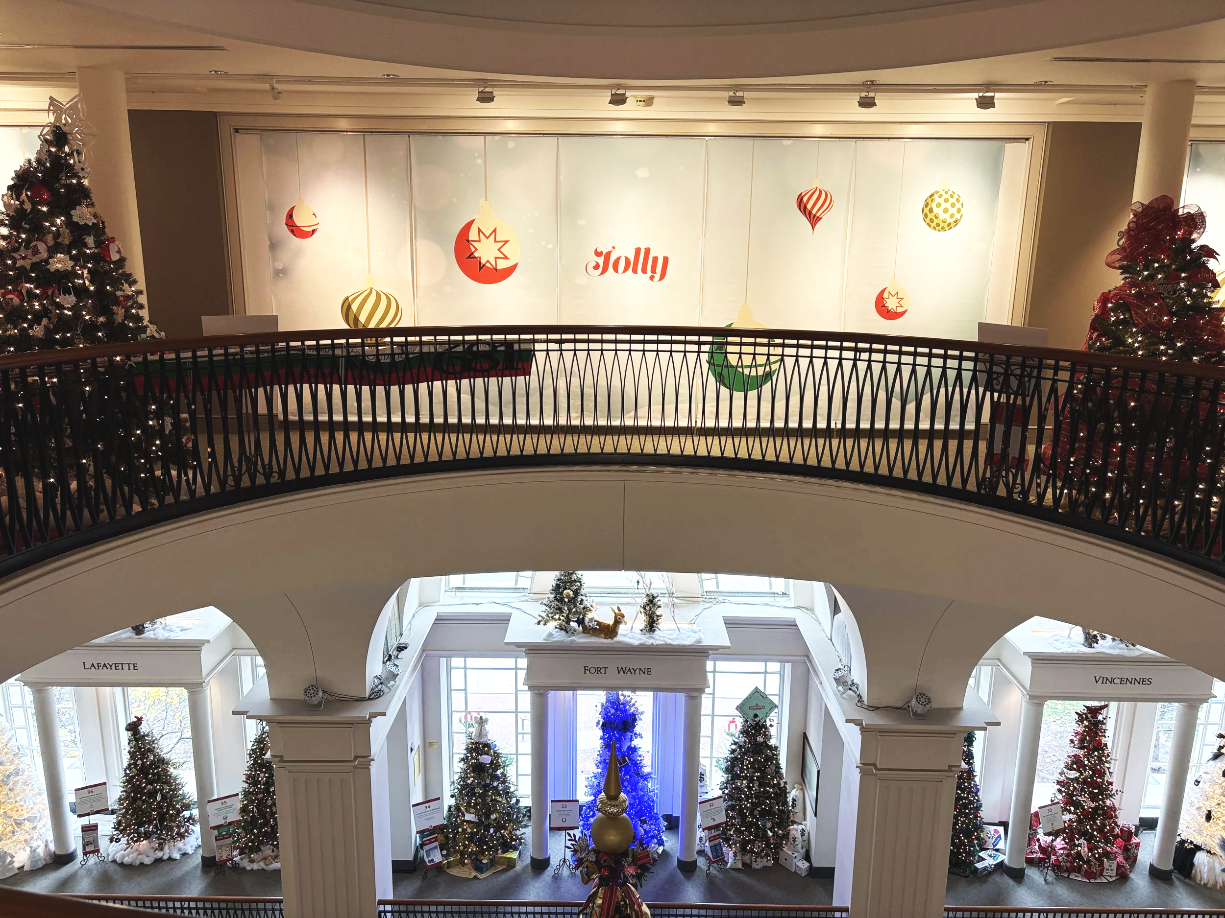 Festival of Trees is an event held yearly by the Indiana Historical Society involving over 100 trees supported by sponsors.